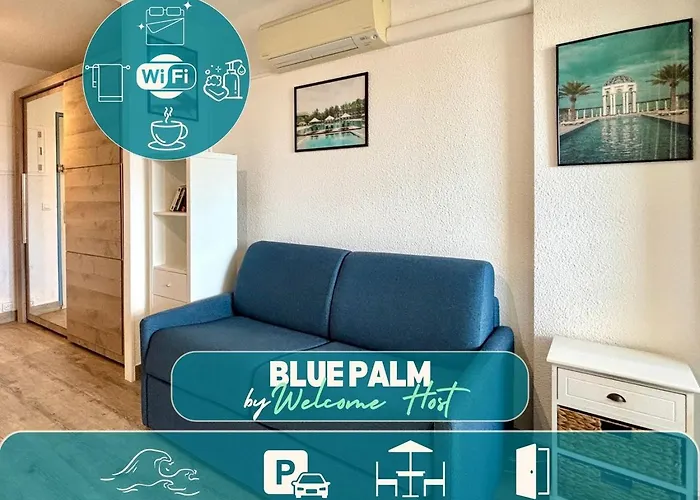 Зупиняючись в апартаментах Blue Palm, Le Cap Top Confort, Port, Parking, Clim, гості мають доступ до вітальні і повністю обладнаної кухні обладнаної системою клімат-контролю. Для вашого комфорту в цих пляжних апартаментах передбачені окремий туалет і душ. Крім того, у ванній кімнаті ви знайдете фен і рушники.